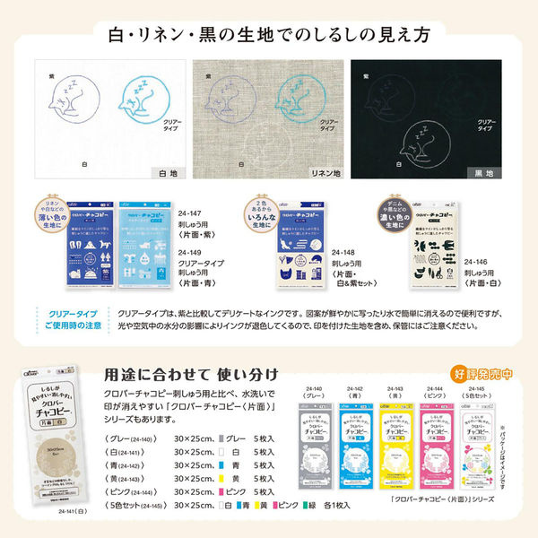 Водорастворимая копировальная бумага от бренда Clover создана специально для вышивки. Даже самые тонкие, изящные линии ложатся на ткань чётко и ярко — без лишних усилий.