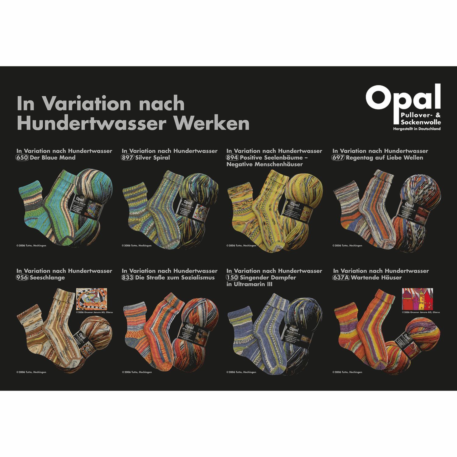 Фриденсра́йх Хундертва́ссер - австрийский живописец и архитектор. Компания Opal выпустила уже 4 коллекции пряжи вдохновленной его картинами.