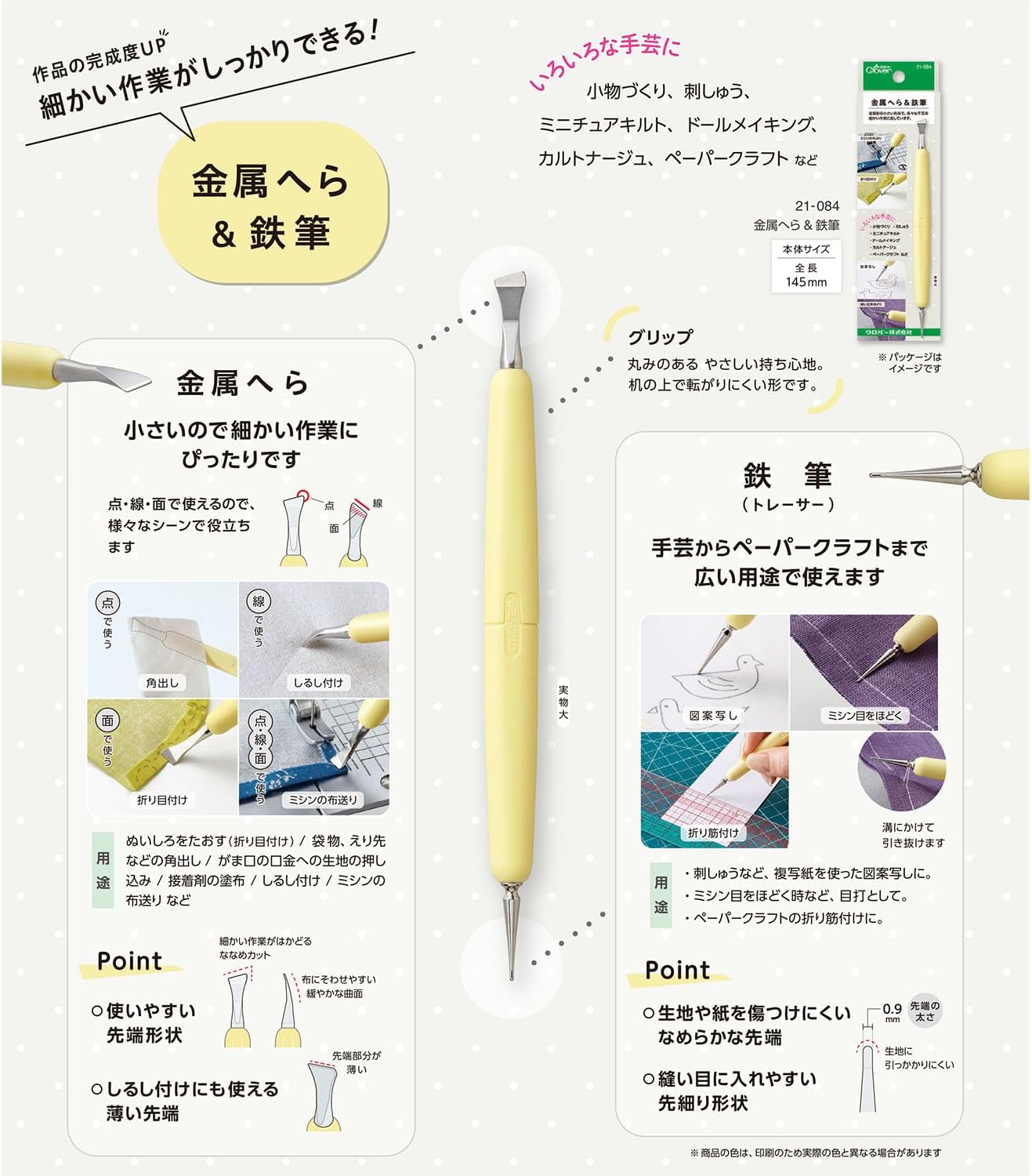 Универсальный инструмент от японского бренда Clover, объединяющий металлическую лопатку и железное перо с тонким наконечником 0,9 мм. Создан для тех, кто ценит точность и аккуратность в каждой детали.